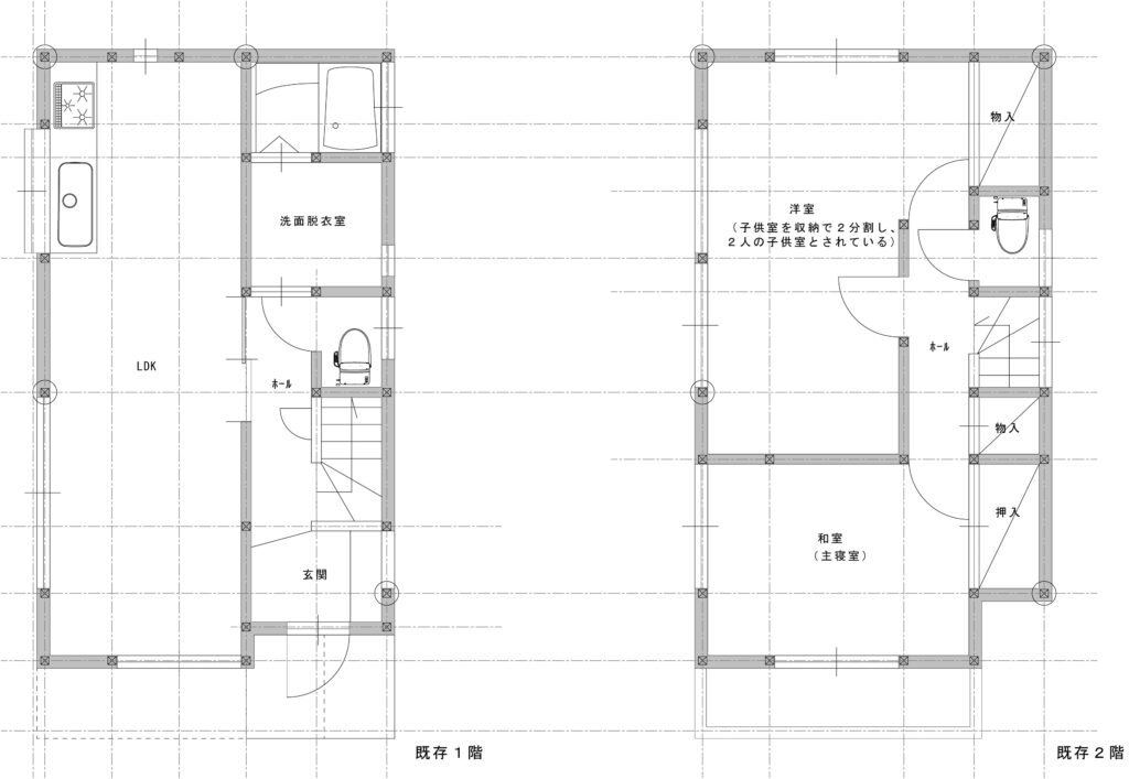 こちらが既存の図面です。1階にLDK、2階に小さく分割した部屋が3つありました。収納も不足していました。